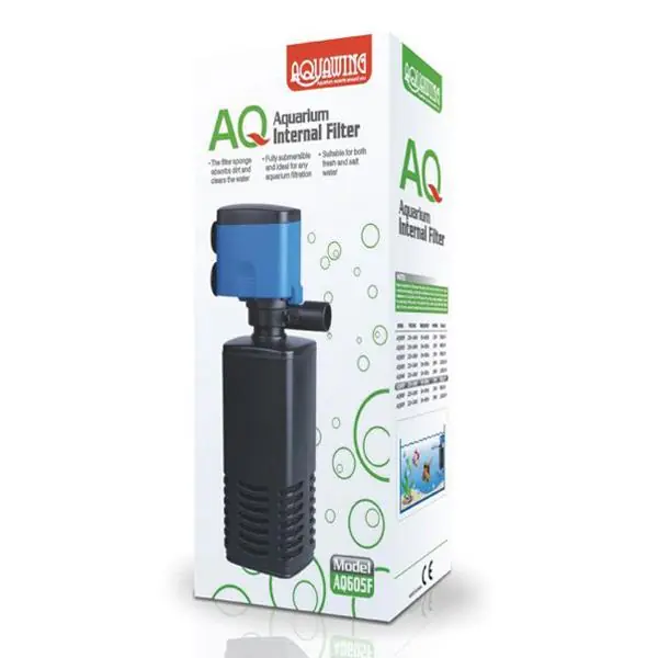 Aquawing AQ605F İç Filtre, küçük ve orta hacimli akvaryumlar için geliştirilmiş, enerji tasarruflu, sessiz ve güvenli çalışma yapısına sahip yüksek performanslı bir iç filtre sistemidir. 15W güç tüketimi ile saatte 880 litre su devir kapasitesi sunarak 120 litreye kadar olan akvaryumlarda etkili biyolojik ve mekanik temizlik sağlar.
