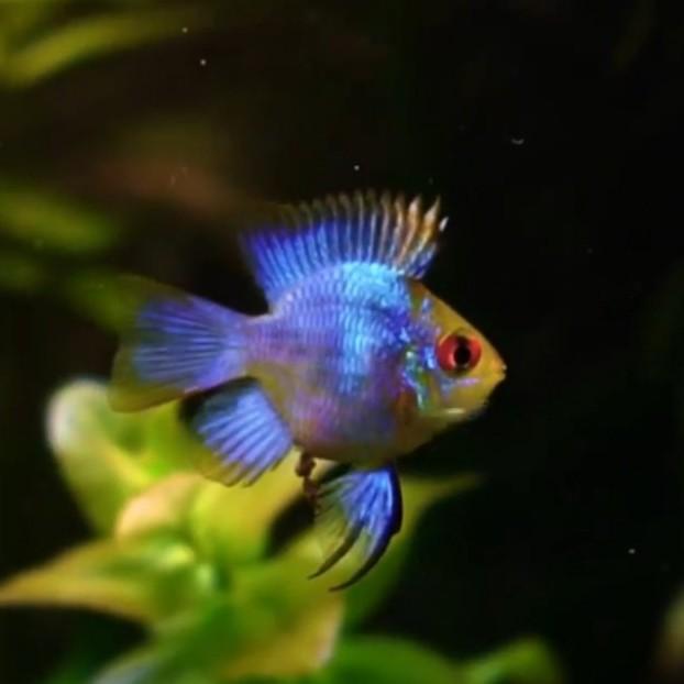Elektrik Mavi Balon Ramirezi (Electric Blue Balloon Ram Cichlid), Güney Amerika Cüce Cichlidlerinin (Mikrogeophagus ramirezi) iki farklı varyasyonunun birleşimidir:
