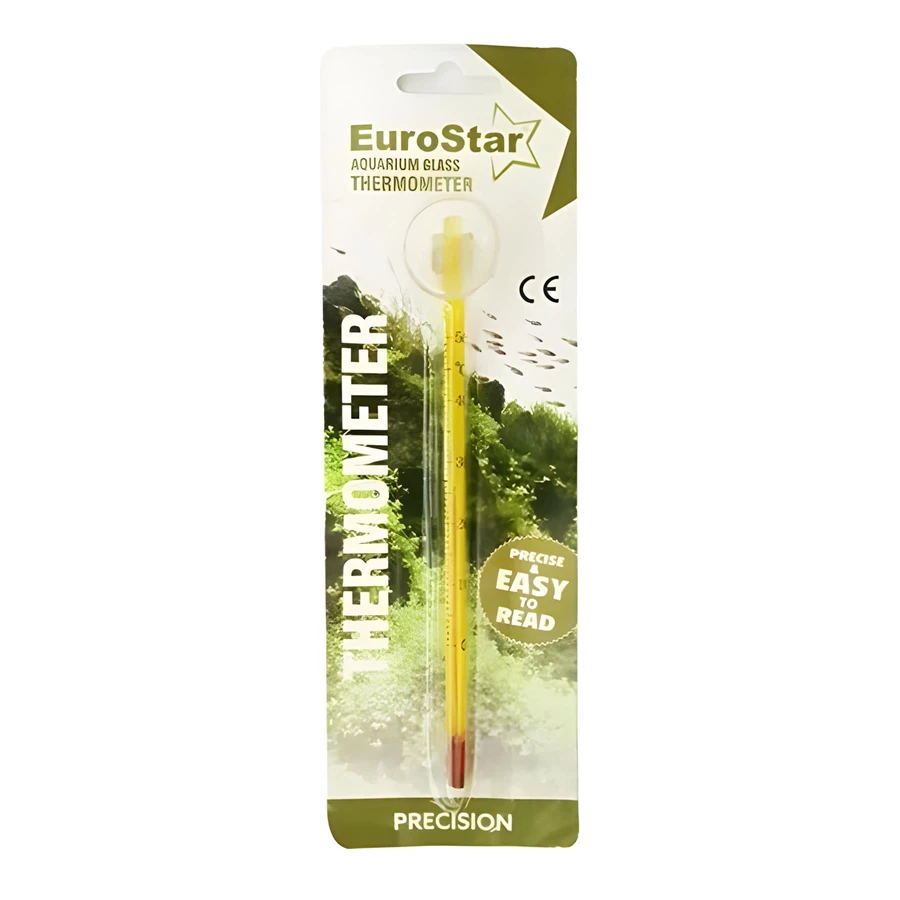 Eurostar Cam Derece Sarı İnce akvaryum termometresi 14 cm, sarı skalalı, ince cam yapılı, vantuzlu sabitleme sistemine sahip, akvaryum su sıcaklığını hassas ölçen cam akvaryum termometresidir.