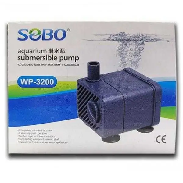 Sobo WP-3200 kafa motoru 300 Lt/H debi ve 5W düşük enerji tüketimiyle akvaryumlarda sessiz, verimli ve uzun ömürlü su sirkülasyonu sağlar.