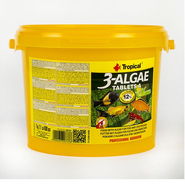 Tropical 3 Algae Tablets, yosun bakımından zengin içeriğiyle bitkisel beslenen tüm tatlı su ve tuzlu su balıkları için özel olarak formüle edilmiş tablet formda balık yemidir.